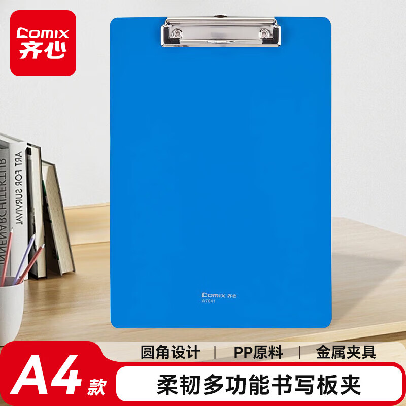 齐心(COMIX)板夹A4书写板夹 文件夹写字板金属强力夹塑料合同标书菜单夹PP平板夹办公用品 蓝色EA8010