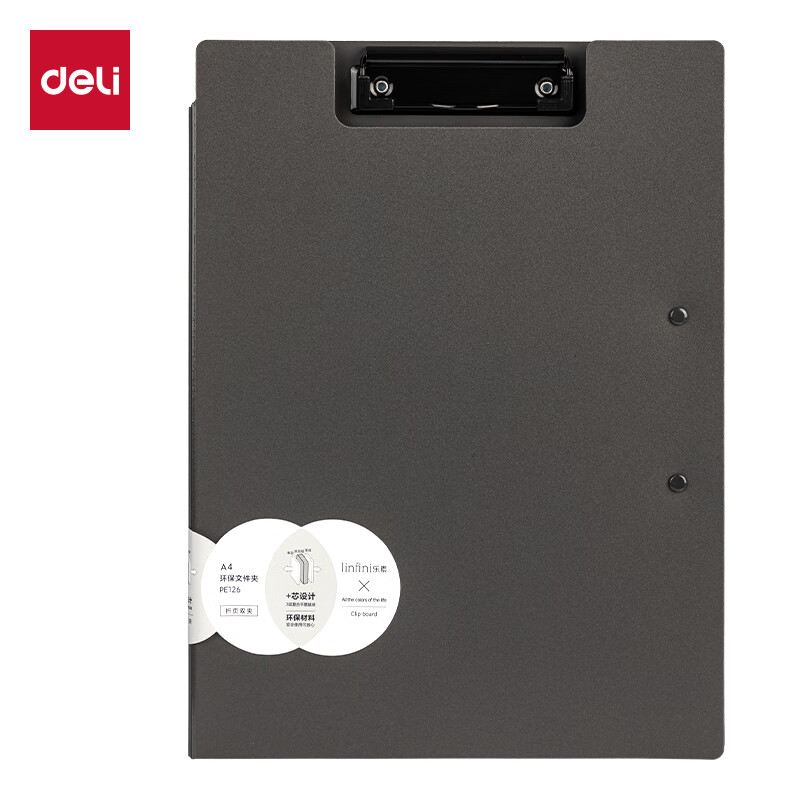 得力(deli)A4书写板夹 文件夹会议资料夹书写板夹写字板办公书写垫板试卷收纳夹 办公学习PE122灰色