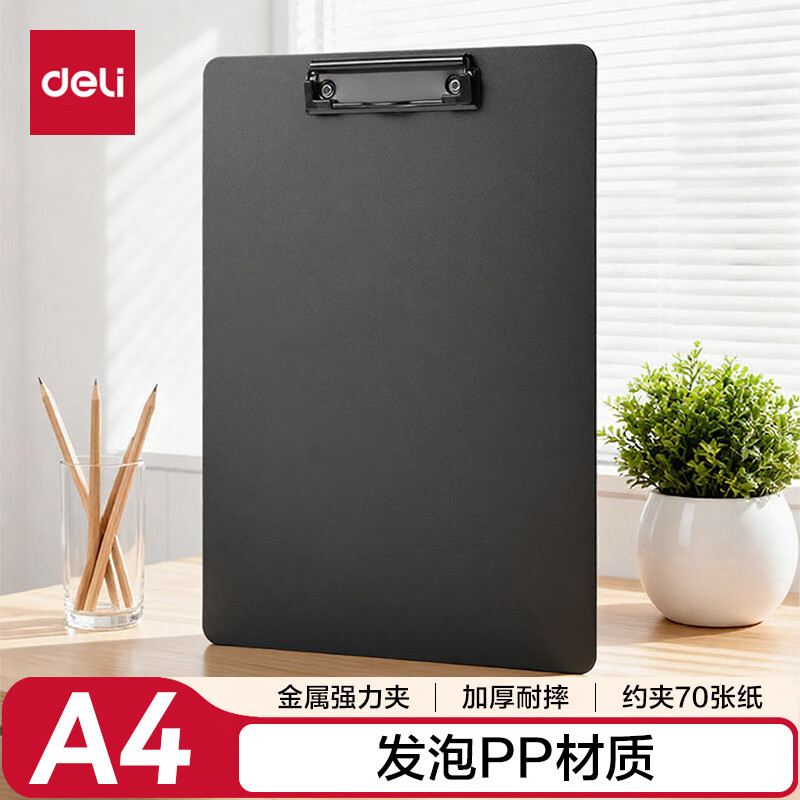 得力(deli)【超级爆款】A4书写文件夹 板夹办公用品金属强力夹塑料夹板菜单夹写字垫板文具64502灰色无挂孔
