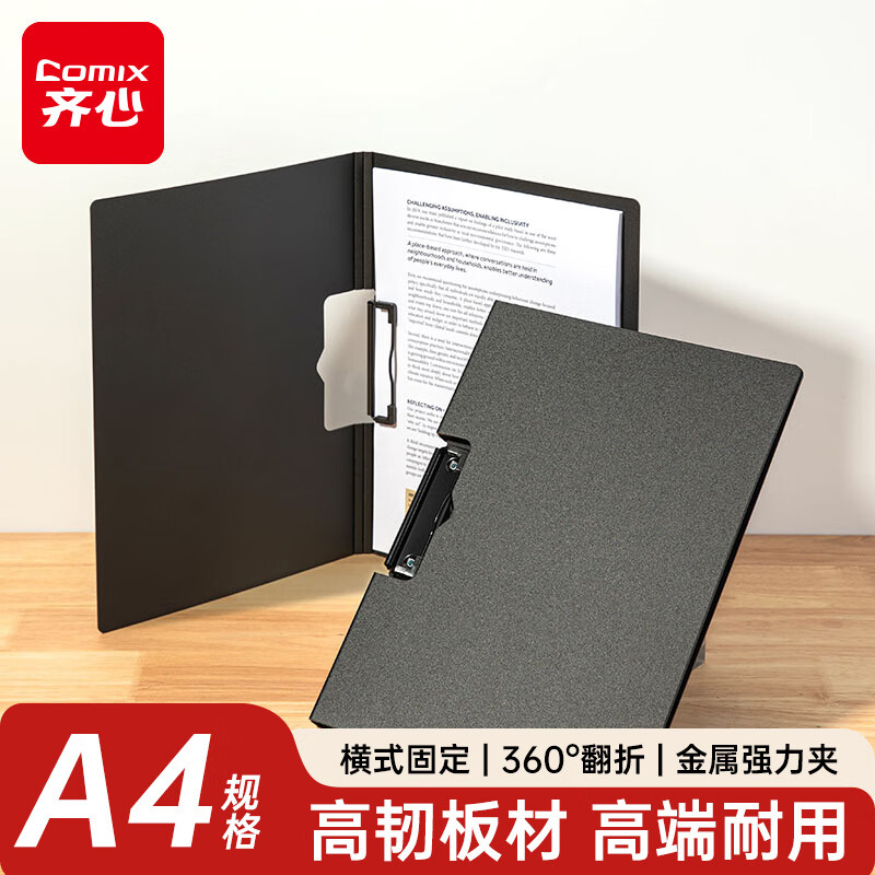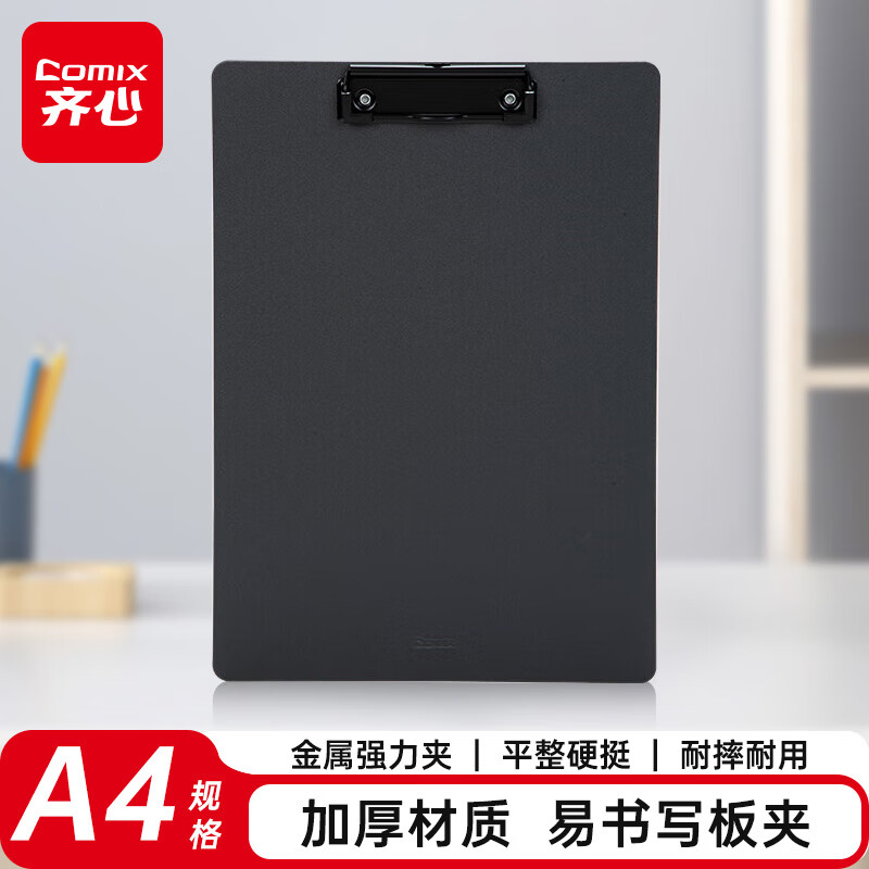 齐心(COMIX)【超级爆款】A4板夹写字板文件夹 夹板文具 书写垫板办公用品金属强力夹塑料夹板菜单夹EA8011深灰