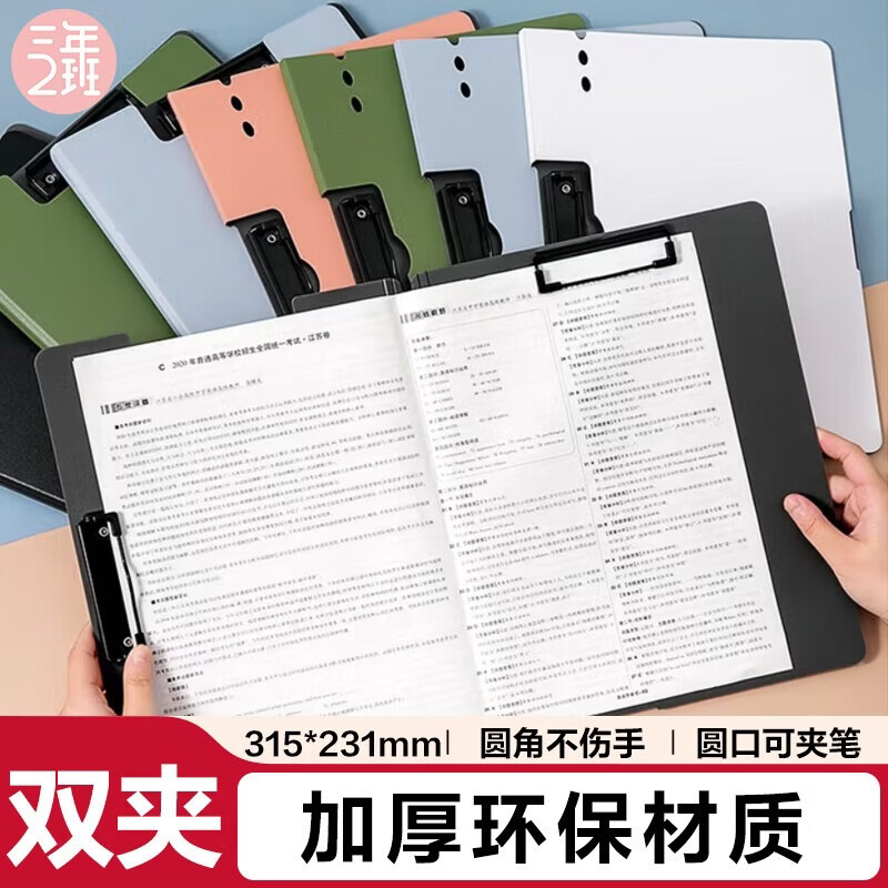 三年二班A4文件夹折页板夹莫兰迪色系学生卷子收纳夹商务办公用品会议夹书写垫板文具夹子 黑色双夹