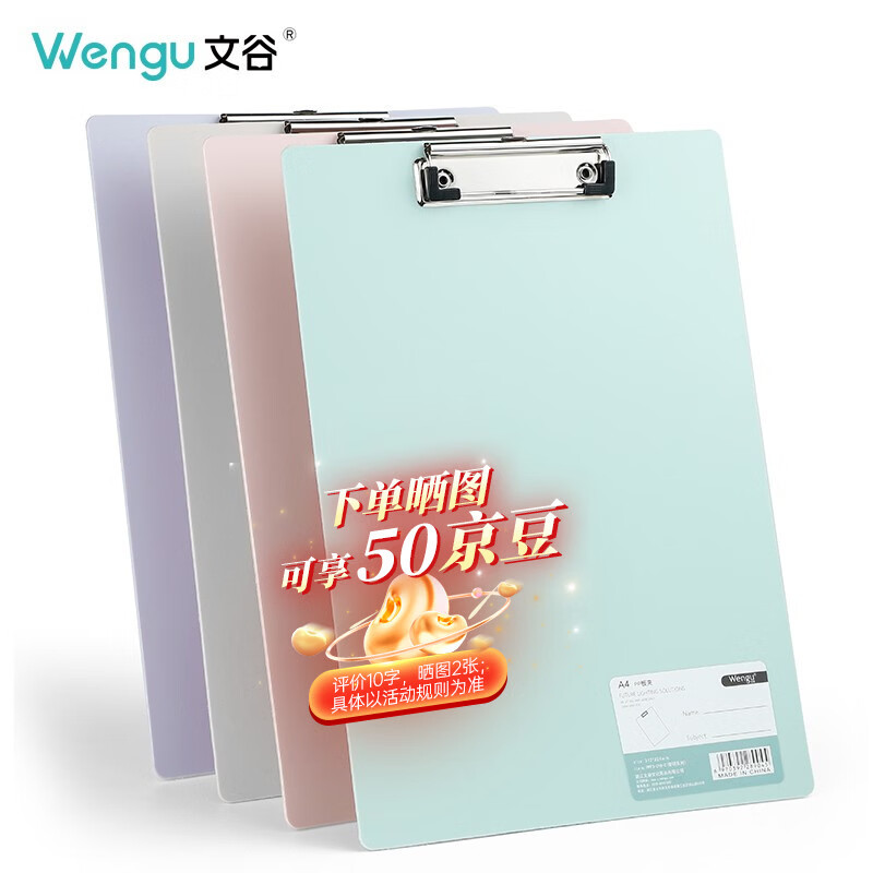 文谷(Wengu)a4夹板文具文件夹板板夹写字夹板加厚硬试卷资料收纳夹菜单夹4色快劳夹垫板考试收纳 4个装PPF3-18