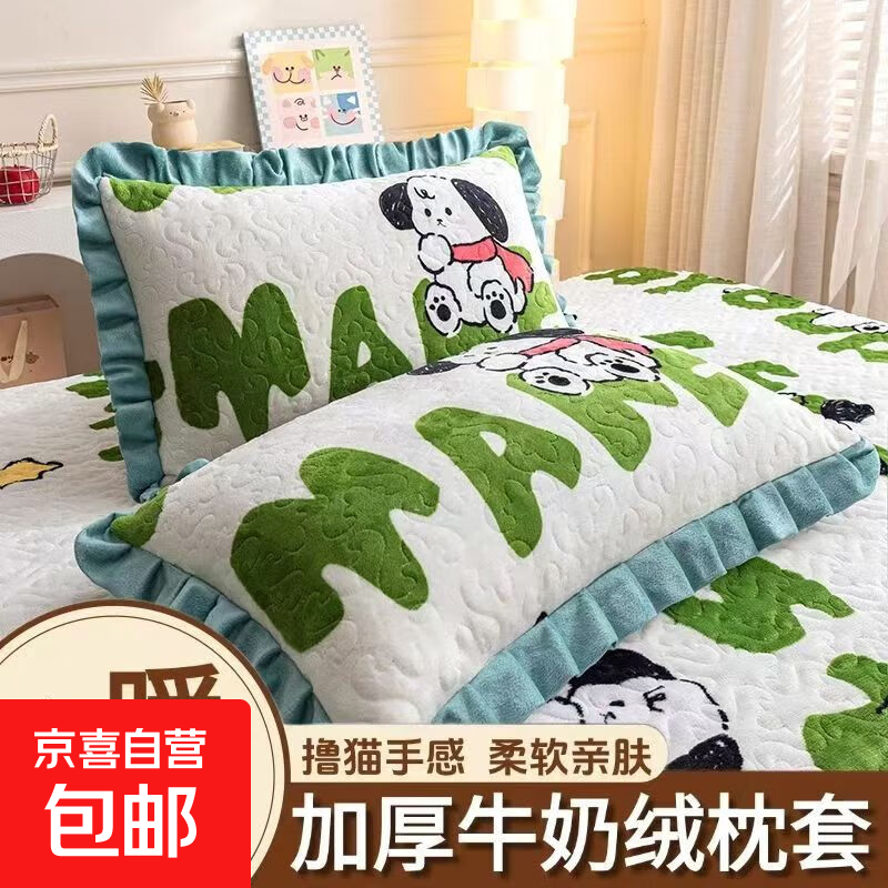 卡通高克重牛奶绒加厚枕套珊瑚绒睡眠家用加绒枕芯套内胆套枕头套 乐乐狗QBY 牛奶绒加厚枕套单只装