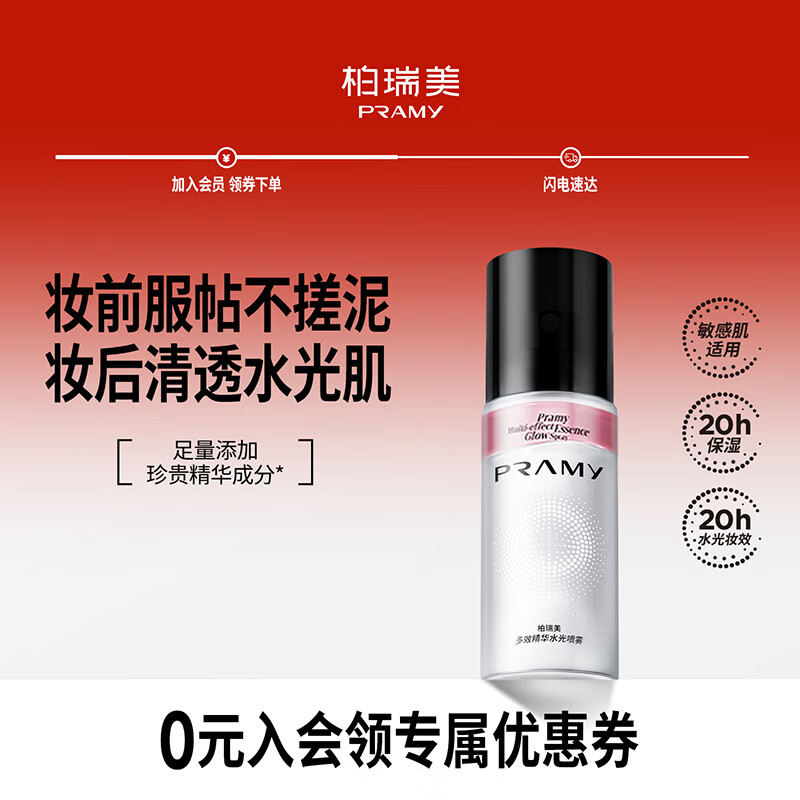 柏瑞美(PRAMY)水光妆前喷雾保湿植萃配方雪山粉75ml节日礼物送女友