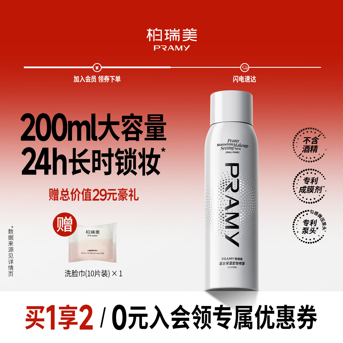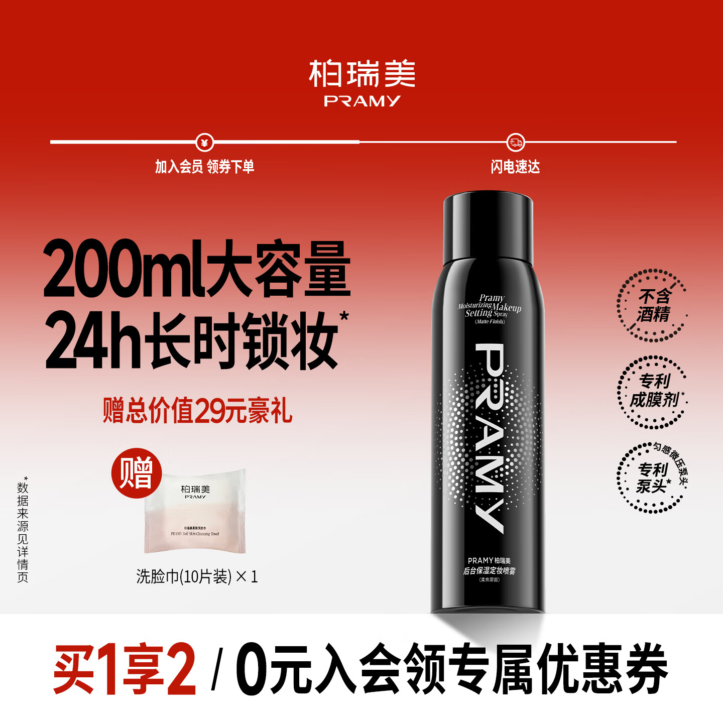 柏瑞美(PRAMY)定妆喷雾持久不脱妆前妆控油保湿亮面200ml新年礼物送女生女友