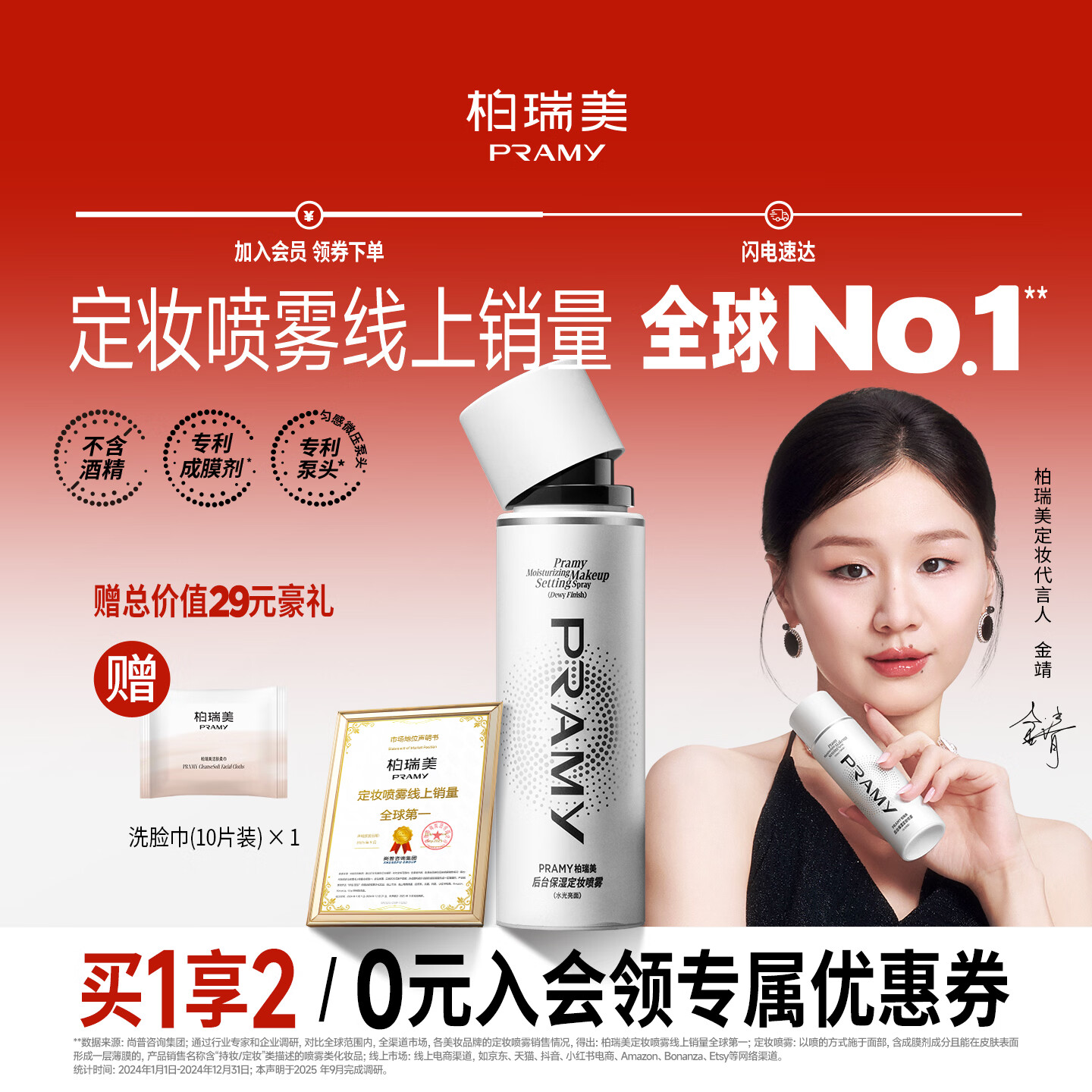 柏瑞美(PRAMY)定妆喷雾经典款成膜长时持妆保湿防蹭白瓶100ml圣诞礼物送女友