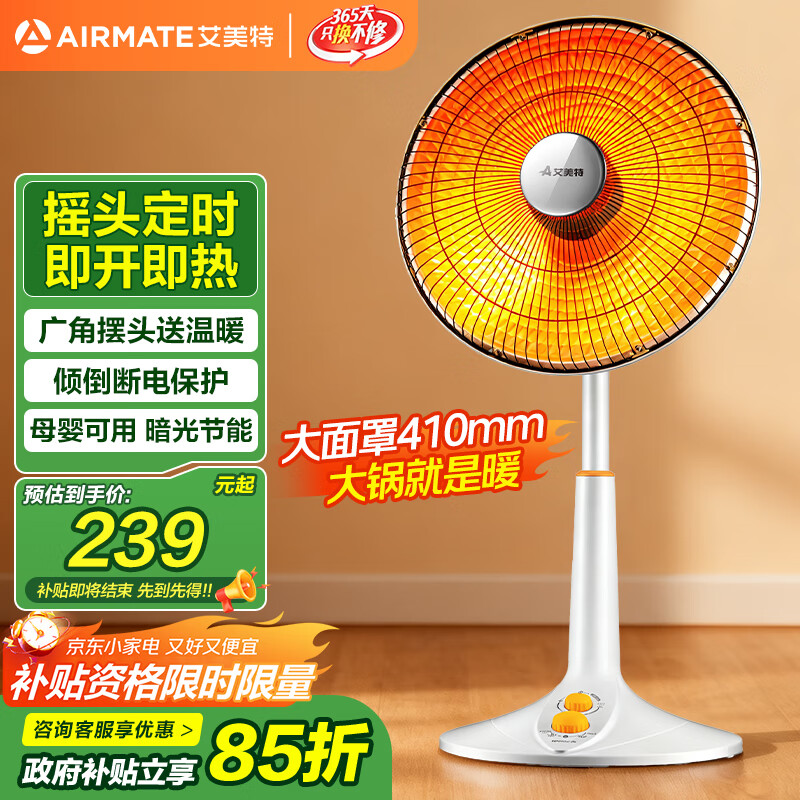 艾美特(AIRMATE)小太阳取暖器轻音电热扇远红外制热电暖气家用节能省电烤火炉暗光陶瓷速热两档调节柔光款倾倒断电 高杆【台立两用/1200W】HF1214T-W