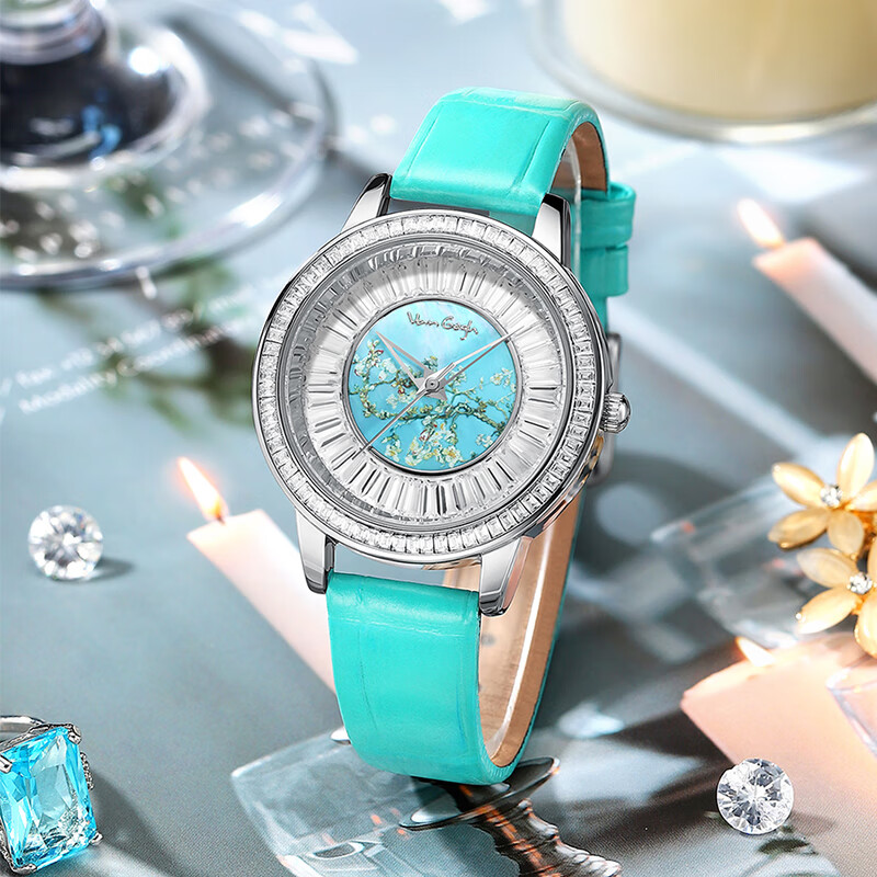 梵高/梵高 送女友礼物女士艺术防水石英表牛皮表带时尚休闲学生手表 盛开的杏树 Lady 09
