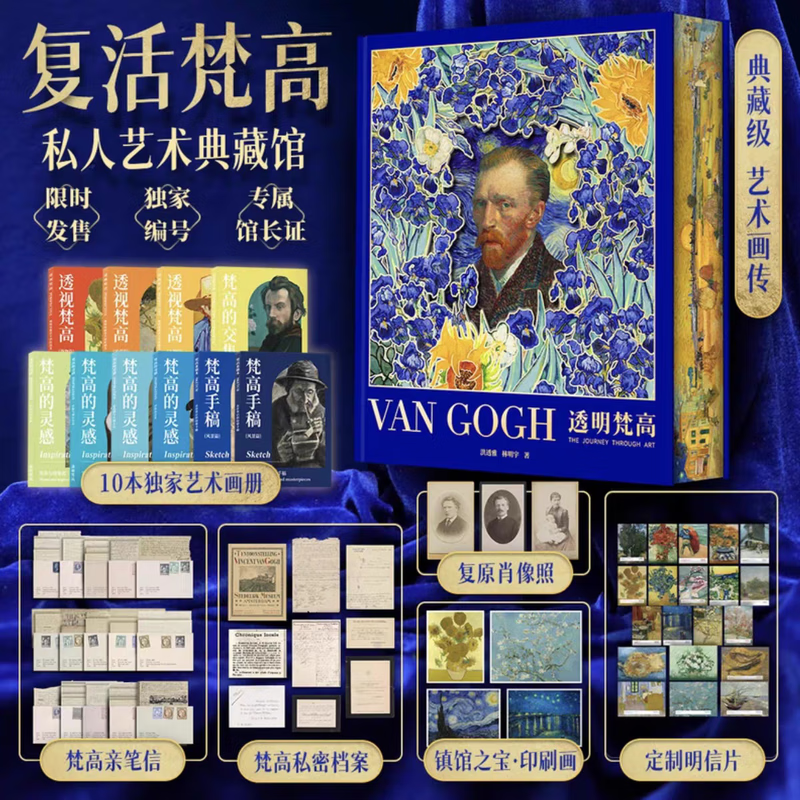 官方正版 透明梵高 复活梵高 私人艺术典藏馆 典藏级艺术画传小透明明 van coch复原肖像照镇馆之宝印刷画册 《透明梵高》艺术典藏馆全套藏品明信片金句卡2.0