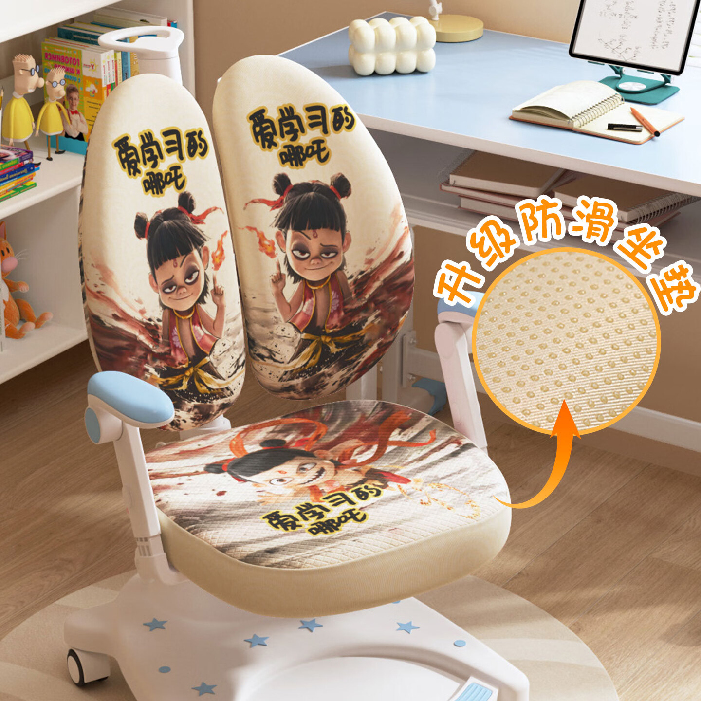 LULUDANY儿童学习椅套罩哪吒魔童防滑爱果乐护童学生写字专用座椅靠背坐套 (M码)魔童降世【升级防滑座垫】 无规格
