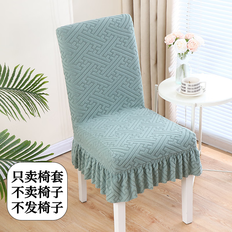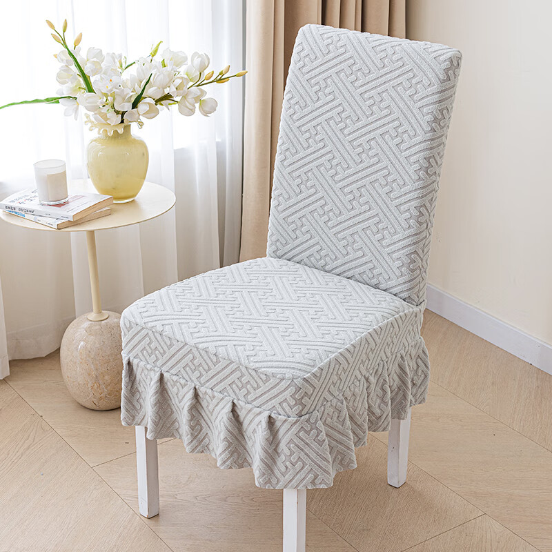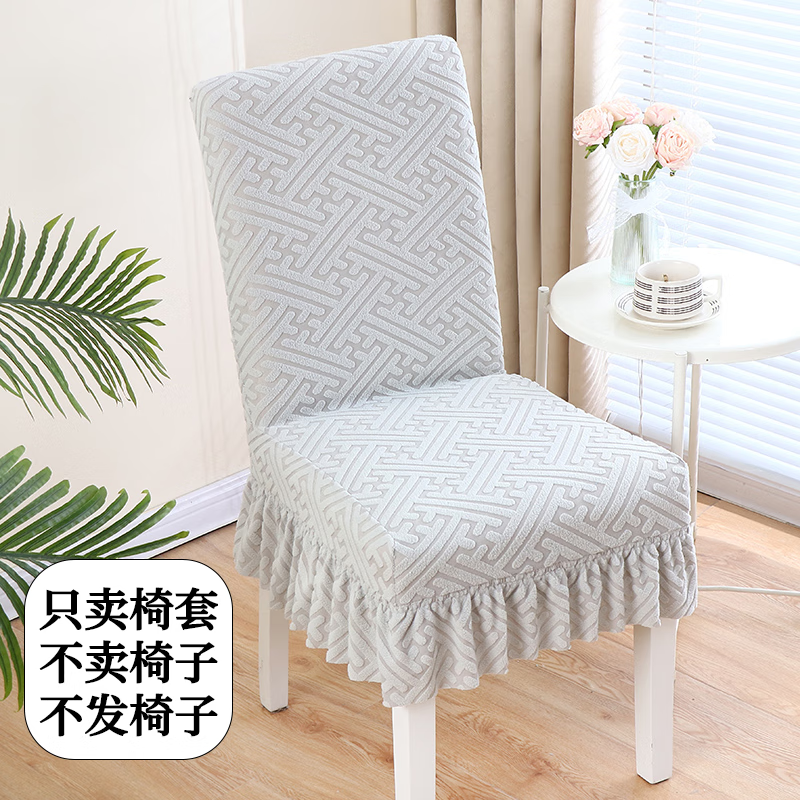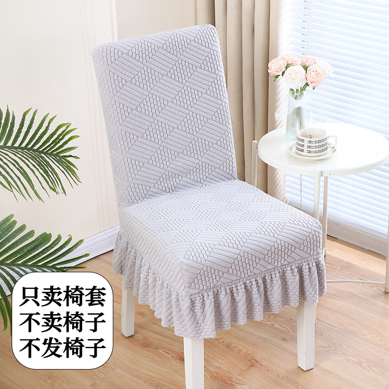 简娜(JIANNA)加厚餐桌椅子套罩凳子套罩椅垫子套装靠背一体座椅套新款四季通用 格调裙摆-浅灰色 适用#cln#坐宽46cm内坐长48cm内