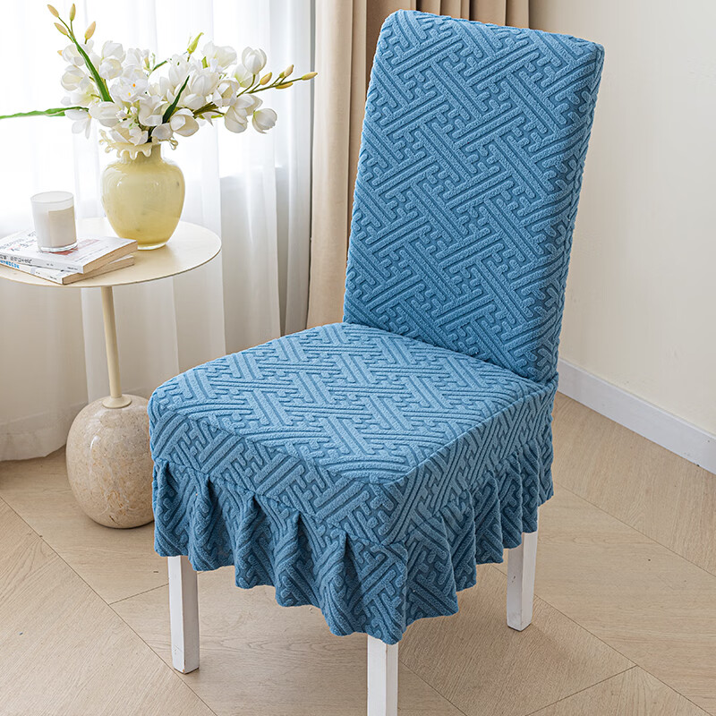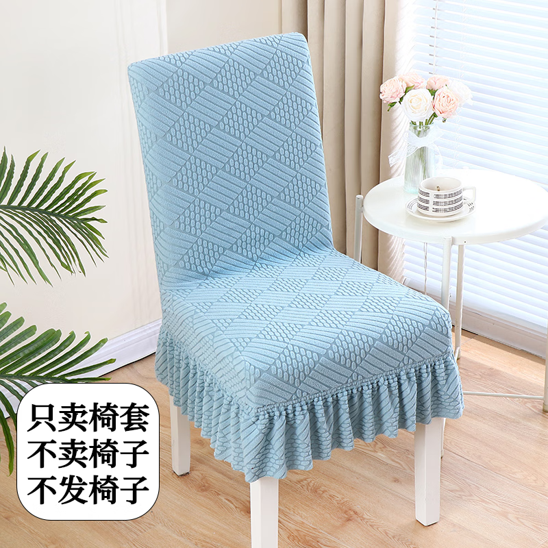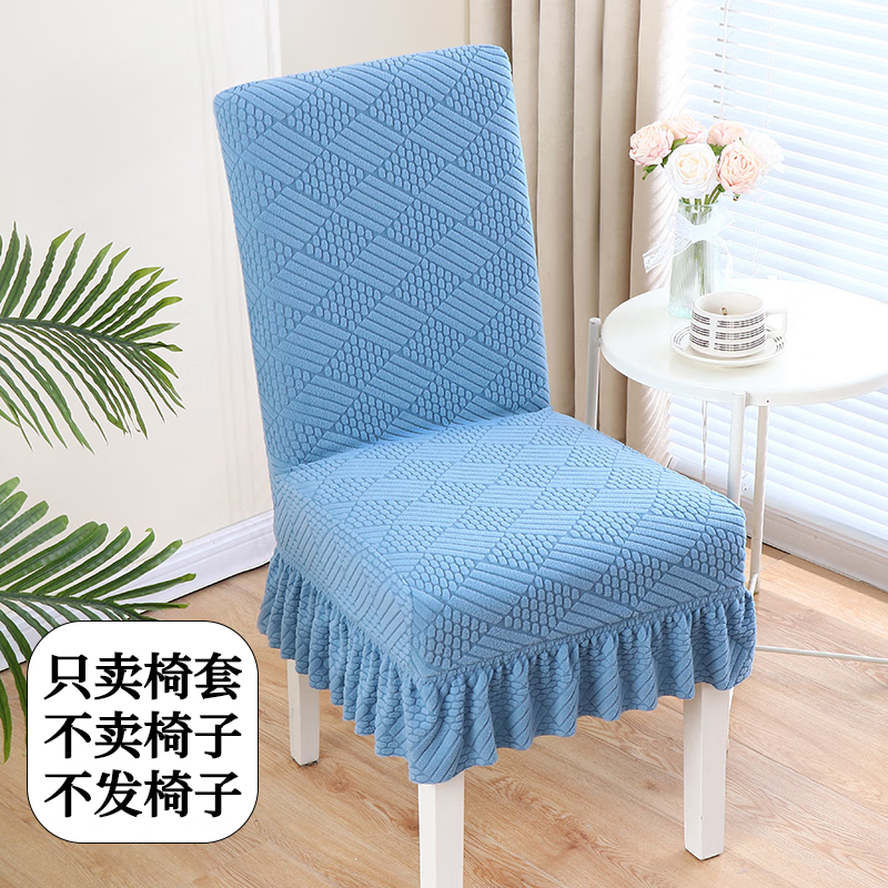 简娜(JIANNA)加厚餐桌椅子套罩凳子套罩椅垫子套装靠背一体座椅套新款四季通用 格调裙摆-宝蓝色 适用#cln#坐宽46cm内坐长48cm内