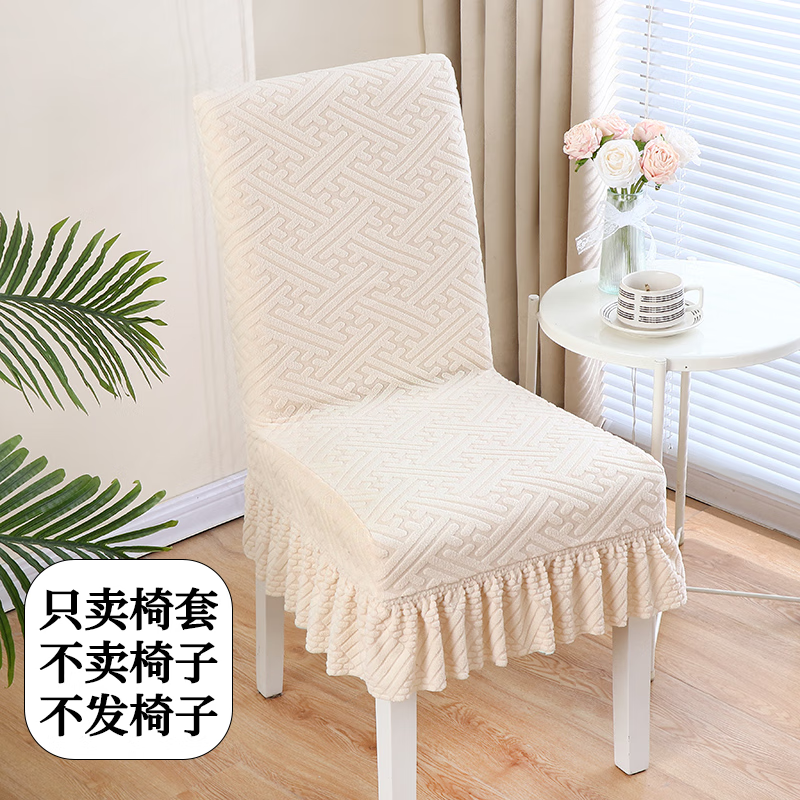 云蔻2024新款椅子套罩四季通用餐桌凳子罩靠背一体保护套针织弹力 裙边款弹力椅套 万字纹米白