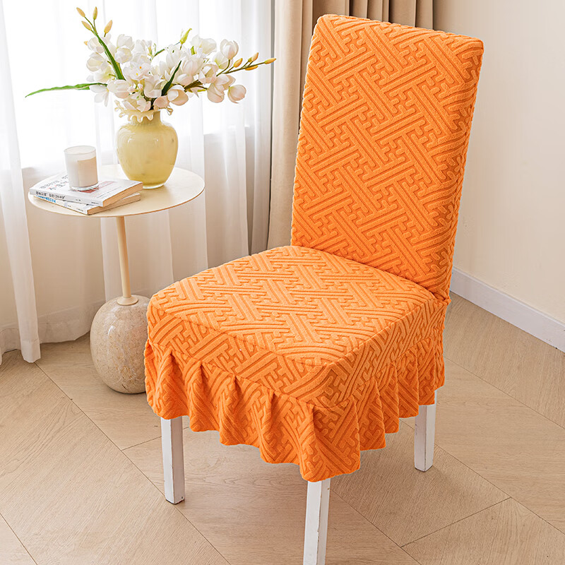 简娜(JIANNA)加厚餐桌椅子套罩凳子套罩椅垫子套装靠背一体座椅套新款四季通用 格调裙摆-橘色 适用#cln#坐宽46cm内坐长48cm内