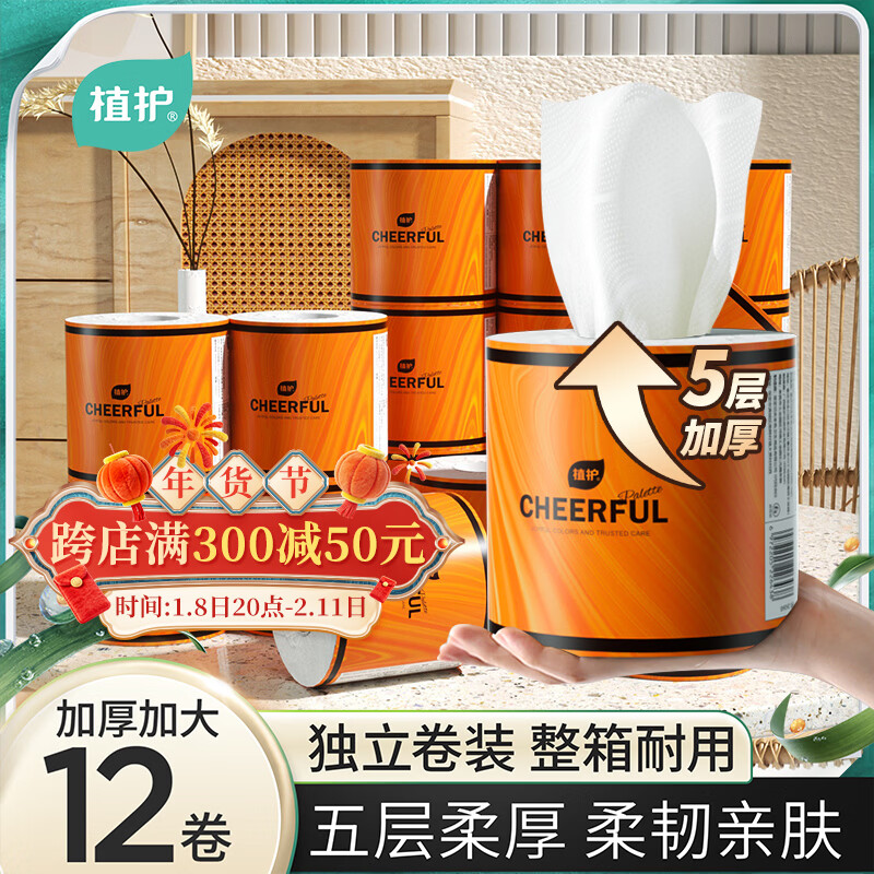 植护气垫柔有芯卷纸5层125克*12卷整箱厕所纸卷筒纸巾卫生纸家用装