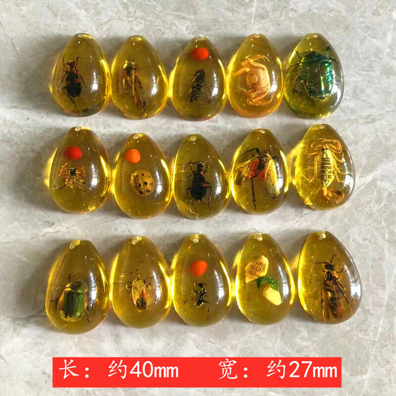 胖东来同款琥珀昆虫标本严选蝎子知了盲盒儿童礼物课本 水滴形金珀色(虫子混搭) 一个订单一个 50mm 20~