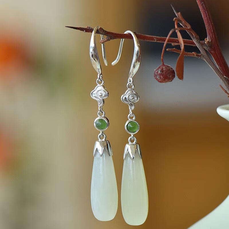 马思迷老凤凰999老凤凰18K金色水滴形和田玉耳坠耳环耳扣耳饰女配饰 水滴形和田玉耳坠-白金色