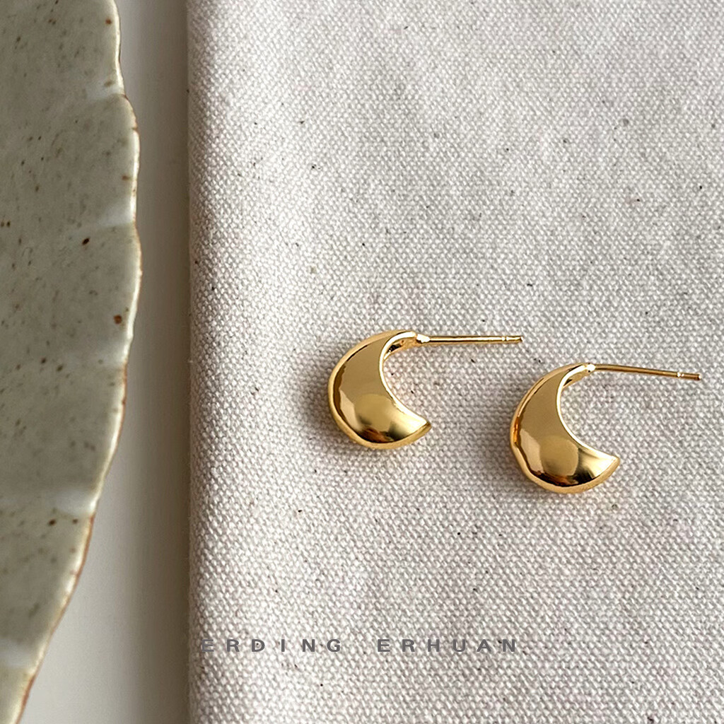 半日逅屿通勤气质金豆豆耳钉法式百搭简约C形弧形金属感水滴形高 4864银针金属豆豆耳钉