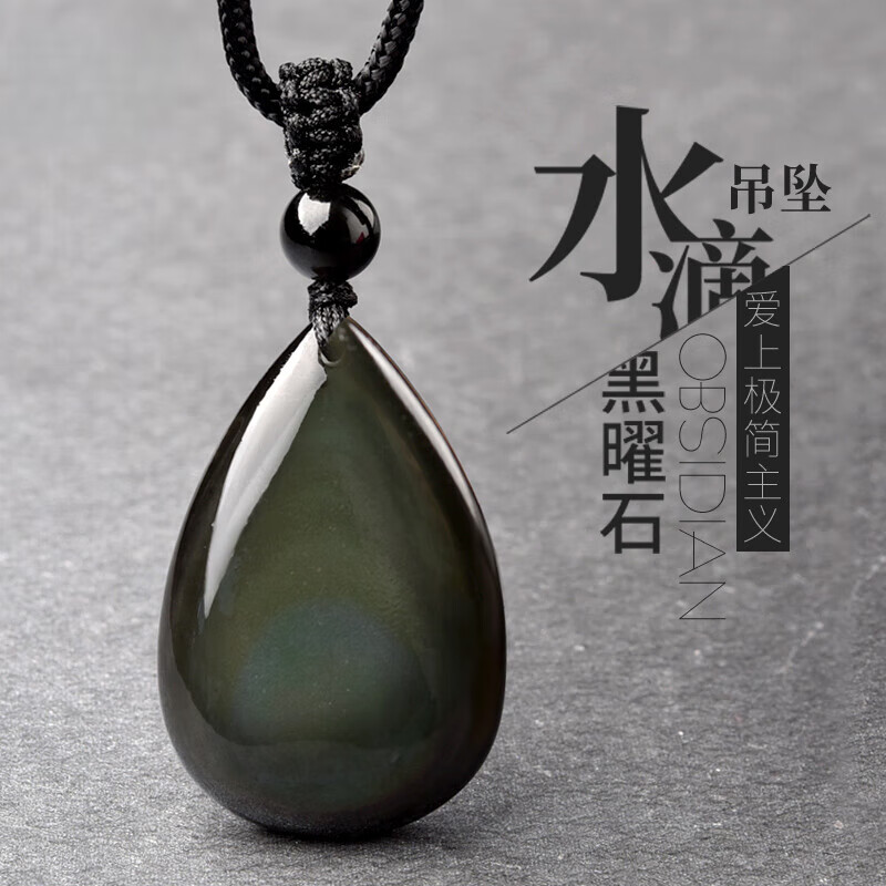 儒系天然黑曜石吊坠彩虹眼黑耀石水滴形黑色饰品挂坠挂件项链男女 黑曜石水滴吊坠