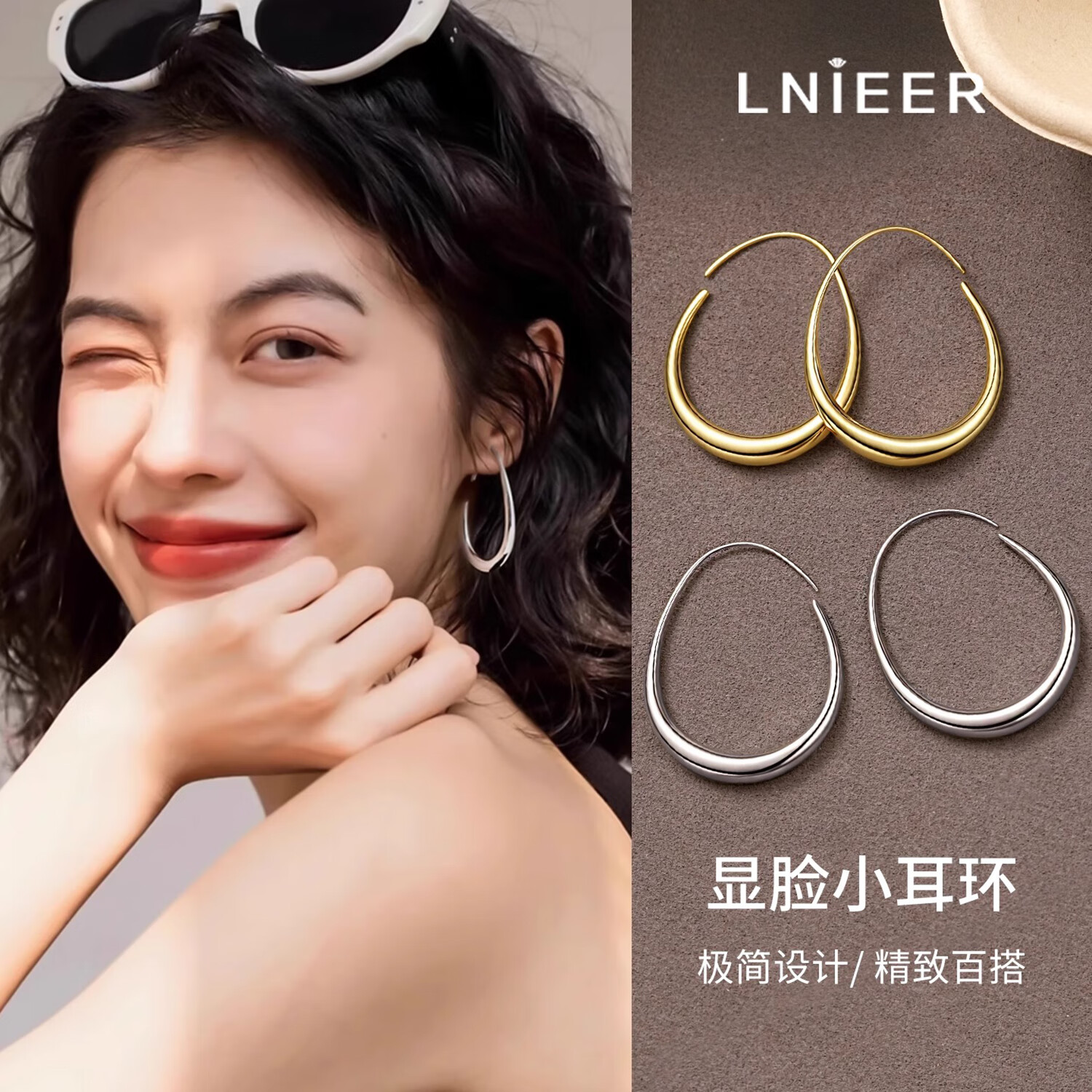 Lnieer高级感水滴耳环女素圈耳圈椭圆圈圈2025新款爆款复古适合圆脸耳饰 水滴形圆圈耳环银色
