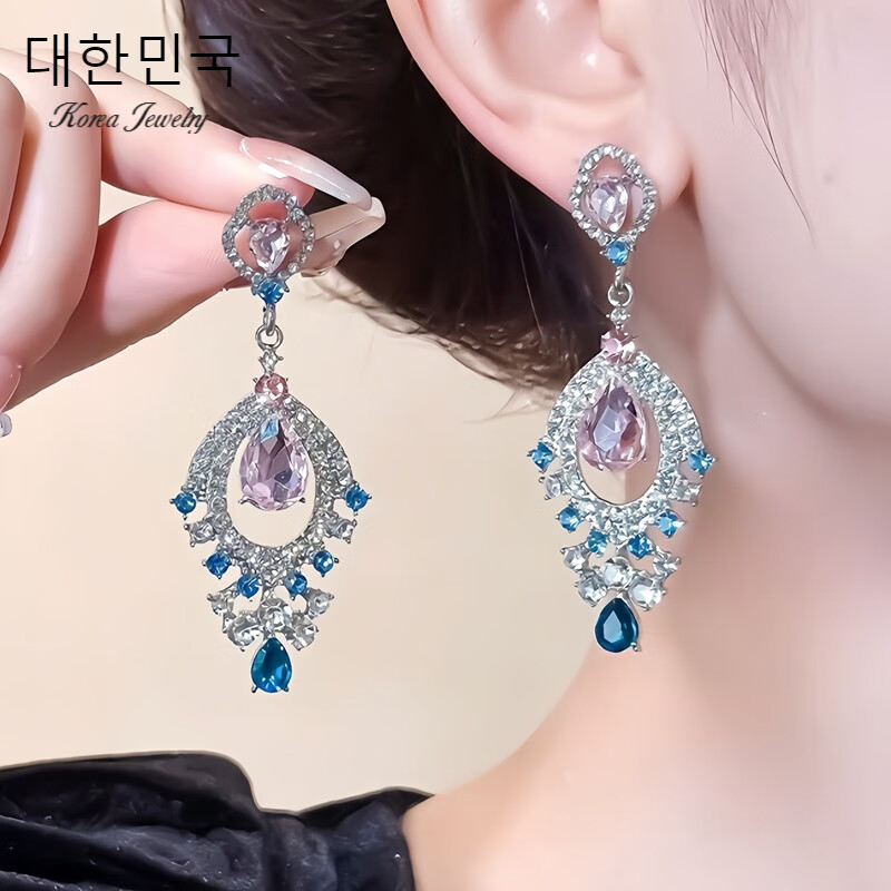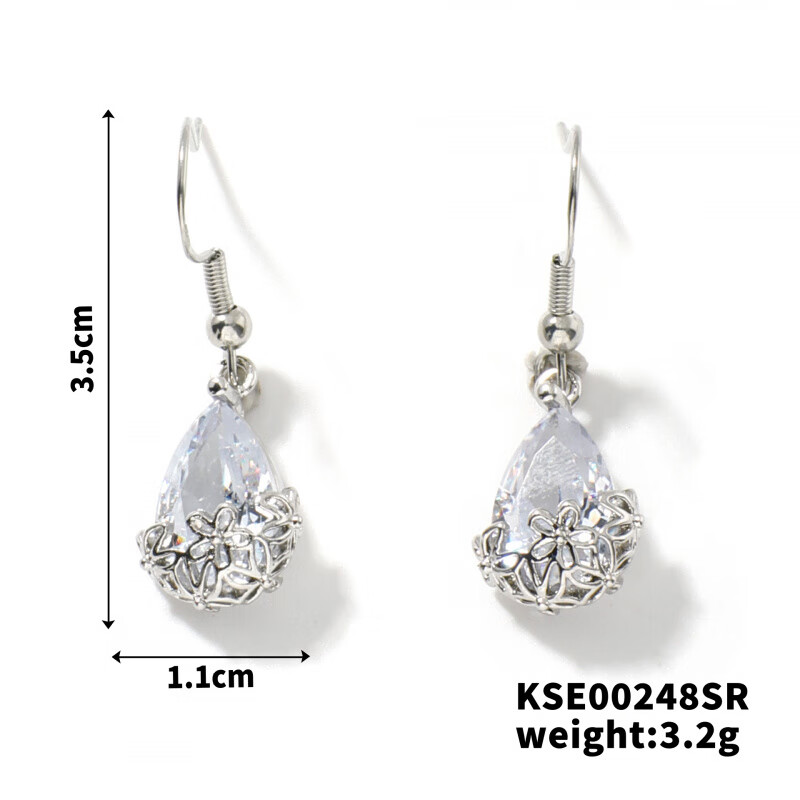 KZD925银针水滴形闪钻镂空耳环女独特小众设计感耳饰品2025新款 水滴形闪钻镂空耳环_925银针