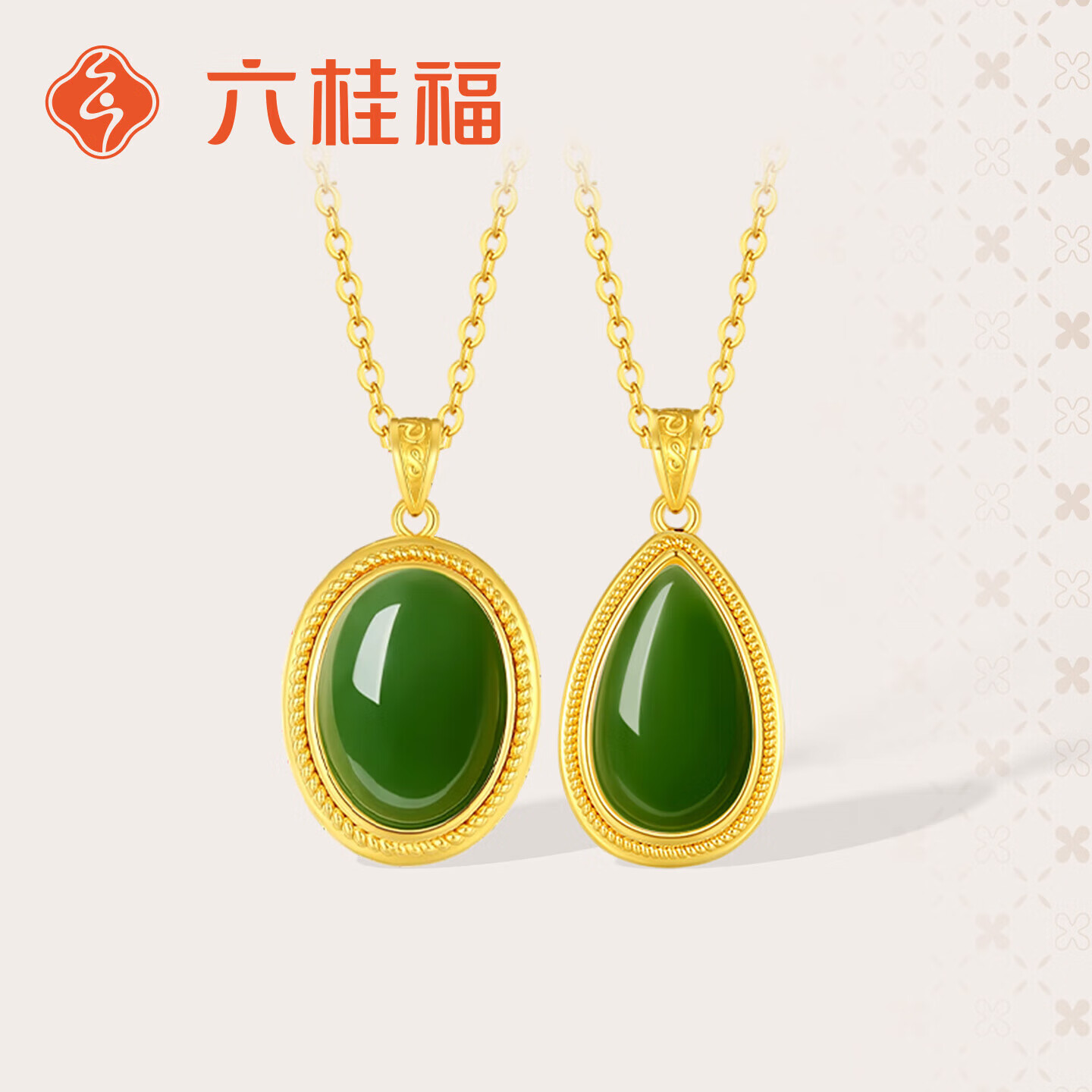 六桂福珠宝新年礼黄金吊坠 金镶和田碧玉吊坠项链挂坠 XH0600112水滴形 约1g