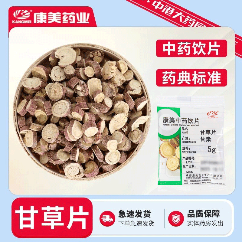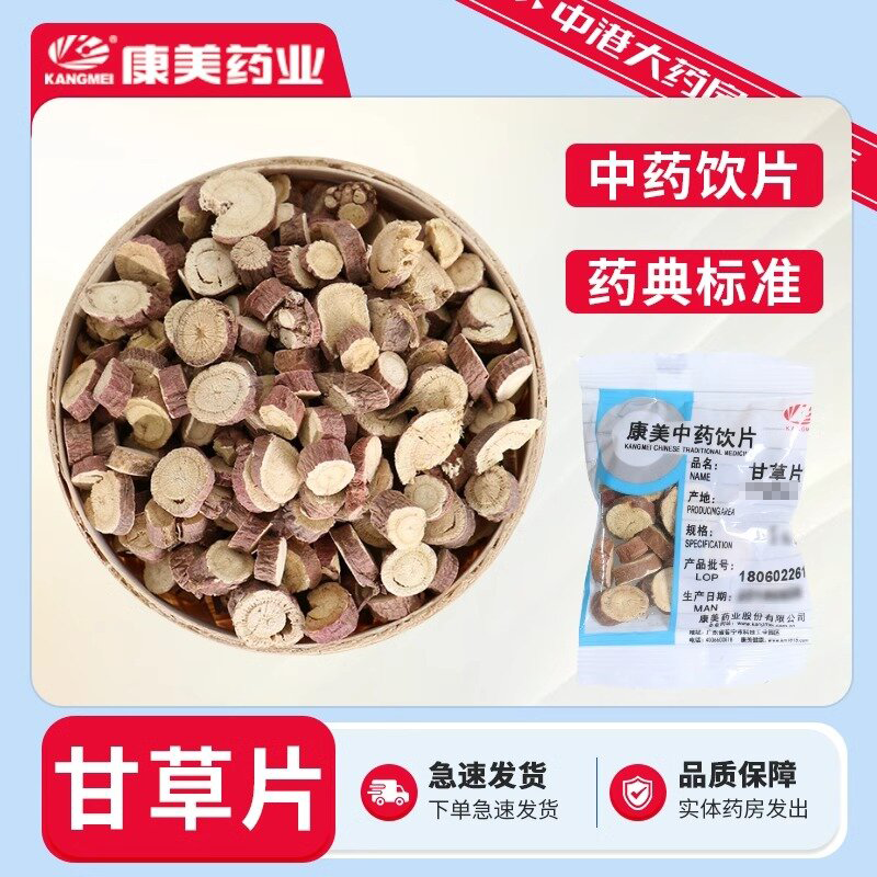 康美中药 甘草片 甘肃道地中药材 煲汤药材可搭胖大海金银花泡水泡茶 5g*1袋