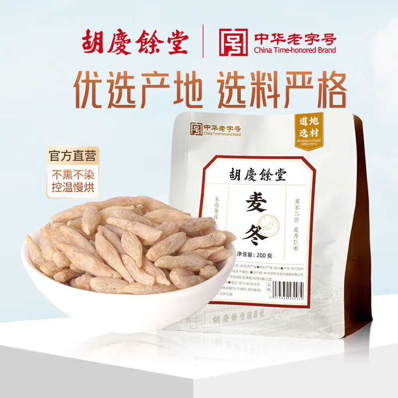 胡庆余堂 麦冬200克袋装四川麦门冬无硫麦冬草 四宝茶原料麦冬泡水养生茶 饱满有芯麦冬好煎煮麦冬汤药滋补