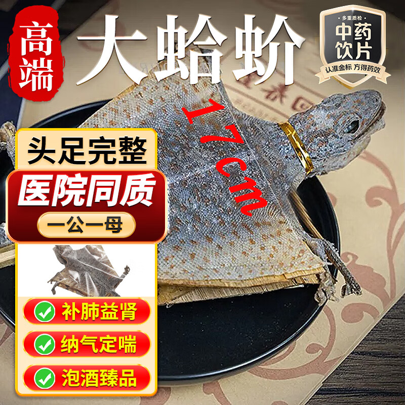 大蛤蚧干货一对公母蛤蚧蛤芥干货中药材中药饮片大蛤蚧酒价粉一对哈吤补肺定喘哈蚧男性补肾滋补泡酒料煲汤药 约16-17cm【一对带头足公母搭配】