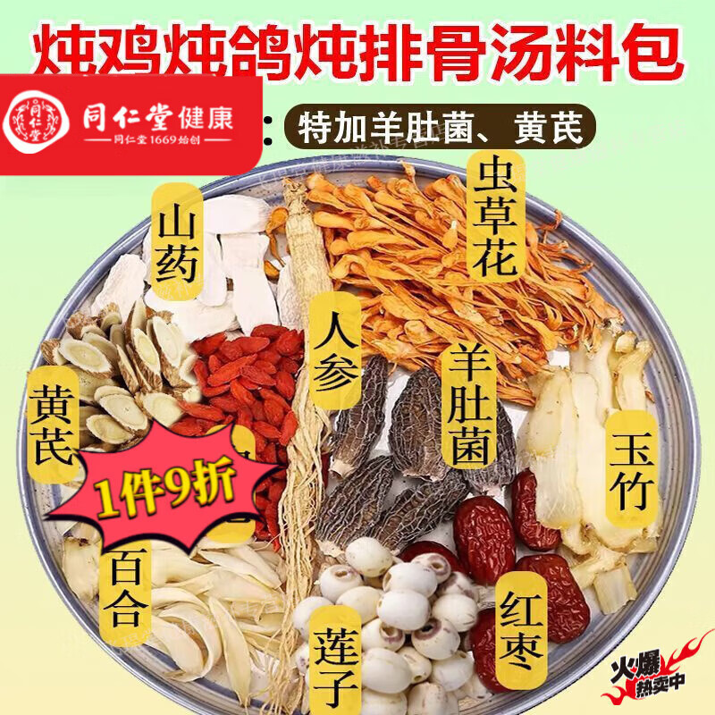 同仁堂鸽子汤煲汤材料补气血滋补养血乌鸡鸽子汤药膳炖汤材料包煲汤材料 【一包约71克】5包净重 滋补加强人参黄芪虫草花十料包