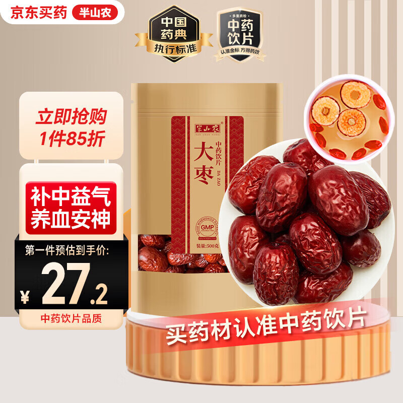 半山农 新疆大枣500克 中药饮片 补中益气,养血安神 蜜饯果干特产搭枸杞煮粥煲汤药材