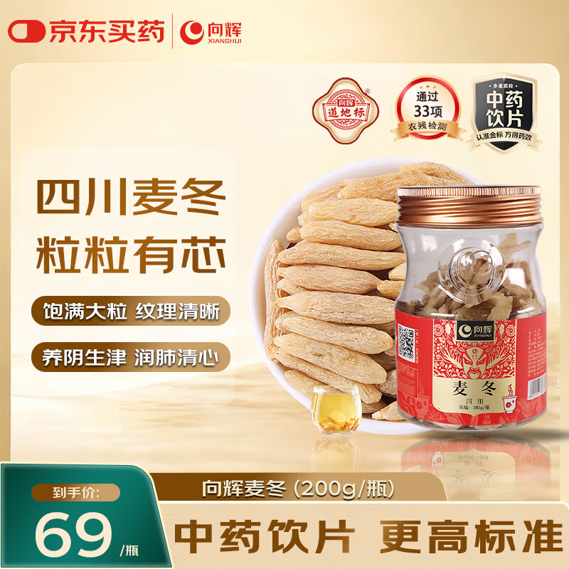 向辉麦冬200g四川绵阳麦冬颗粒饱满润肺止咳煲汤药材用于心烦失眠肠燥便秘可搭黄芪茯苓养生茶中药饮片级