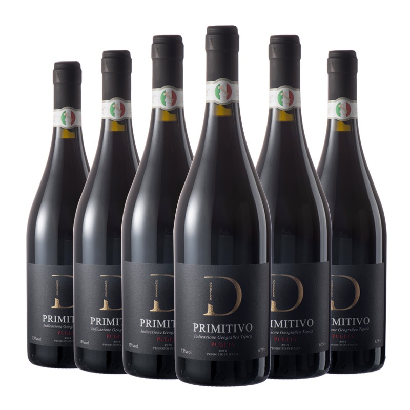 DOBEIKE意大利进口13.5度红酒 整箱多贝克普里米蒂沃干红礼盒装 送礼 6支木箱