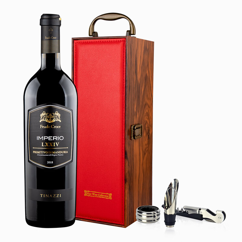 天籁园(TINAZZI)意大利酒庄直供原瓶进口14.5度红酒普里米蒂沃DOP帝国74红葡萄酒 单支配礼盒套装