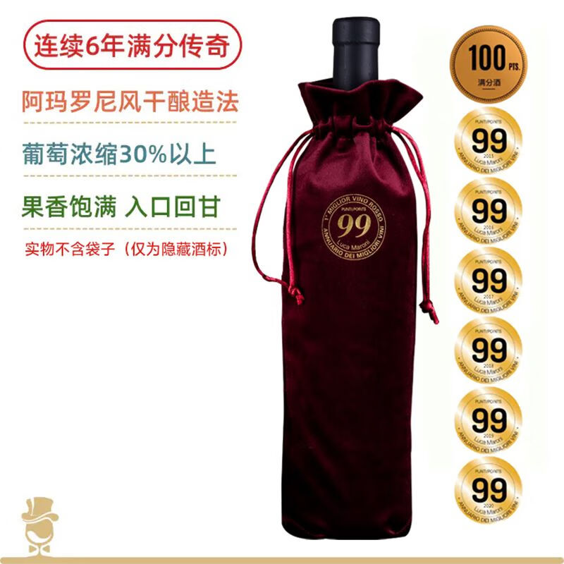 喵酒云仓【LM99满分酒】意大利进口普里米蒂沃仙粉黛红葡萄酒 小阿玛罗尼 Masso玛索【1支】
