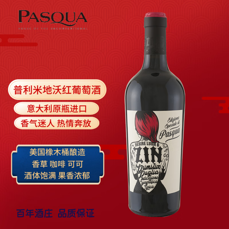 帕斯卡帕斯卡 普里米地沃红葡萄酒 原瓶进口红酒 意乱情迷干红