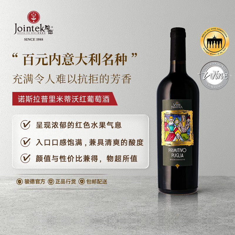 骏德I诺斯拉意大利普里米蒂沃(Primitivo)干红葡萄酒原瓶进口送礼 2022年750ml单支装