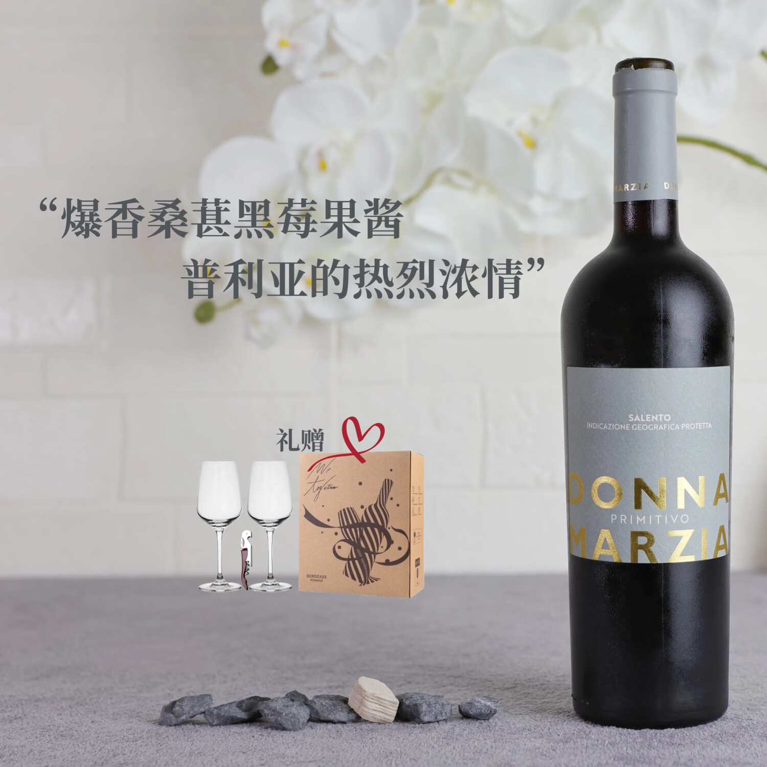 BOSCA意大利原瓶进口康堤捷卡玛莎女士普里米蒂沃干红葡萄酒750ml 【送水晶对杯】750ml*1瓶