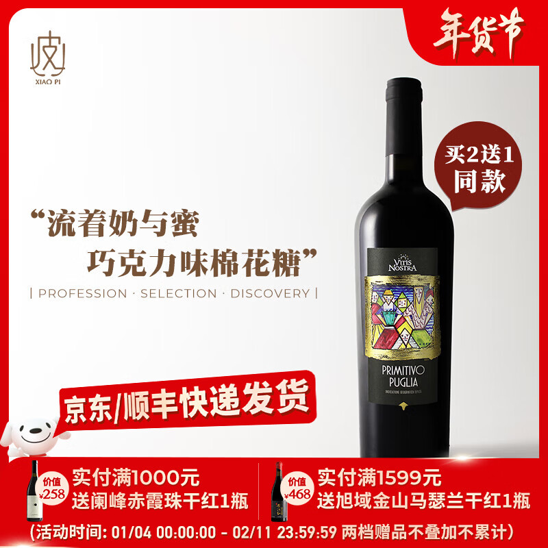葡小皮【流着奶与蜜的口粮酒】意大利诺斯拉普里米蒂沃干红葡萄酒2022年 普里米蒂沃干红*1瓶(2瓶更划算)