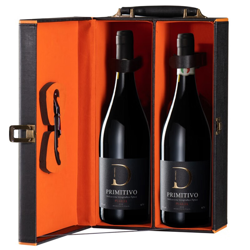 DOBEIKE意大利进口13.5度红酒 整箱多贝克普里米蒂沃干红礼盒装 送礼 2支精美高端手提礼盒