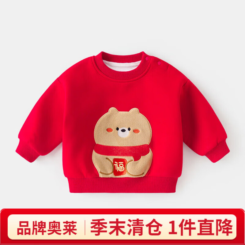 嘟嘟家宝宝加绒卫衣儿童拜年服洋气男女童红色过年服保暖衣 红色 90