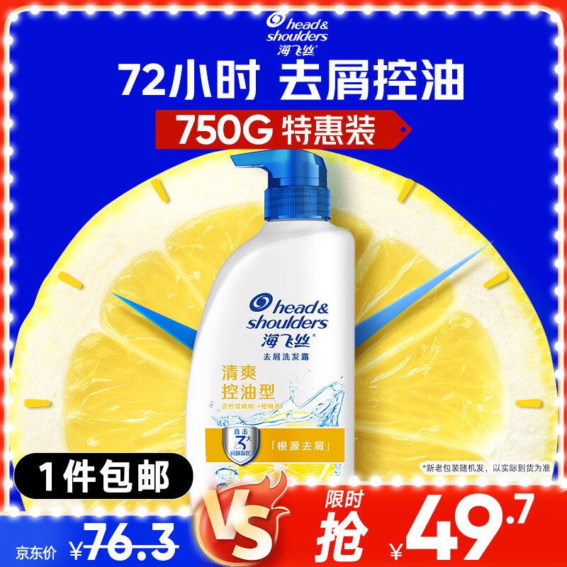 海飞丝去屑洗发水男士女士清爽去油750g洗头膏洗发露洗发液控油蓬松