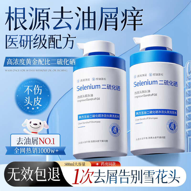 韩方五谷二硫化硒洗发水500ml去屑止痒控油水杨酸毛囊脂溢性洗发液金榜第1
