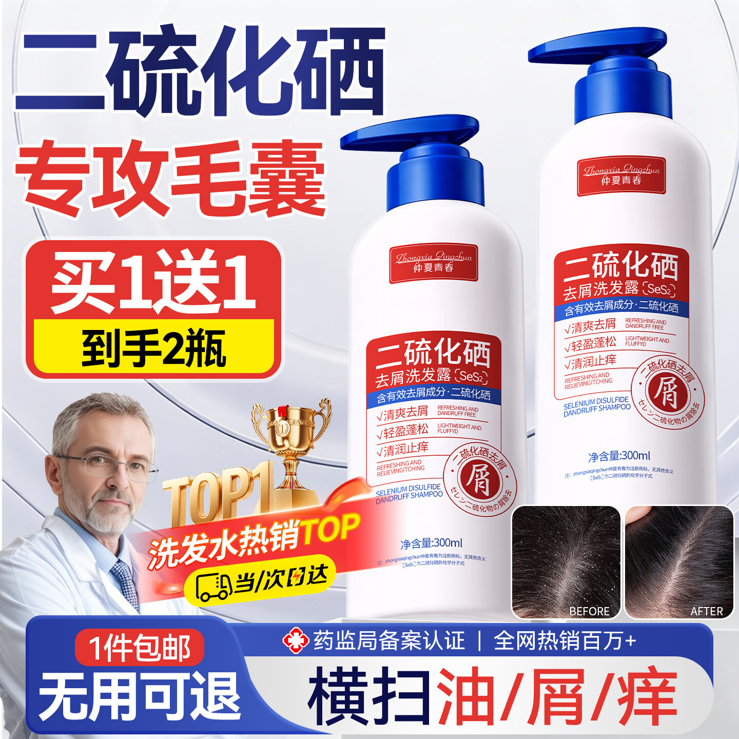 佰萃莱二硫化硒洗发水露去屑止痒控油持久蓬松二硫化硒洗发液300ml*2
