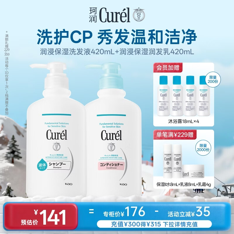 珂润(Curel)洗发液420ml+润发乳420ml 润养秀发温和保湿洗发水套装敏感肌适用