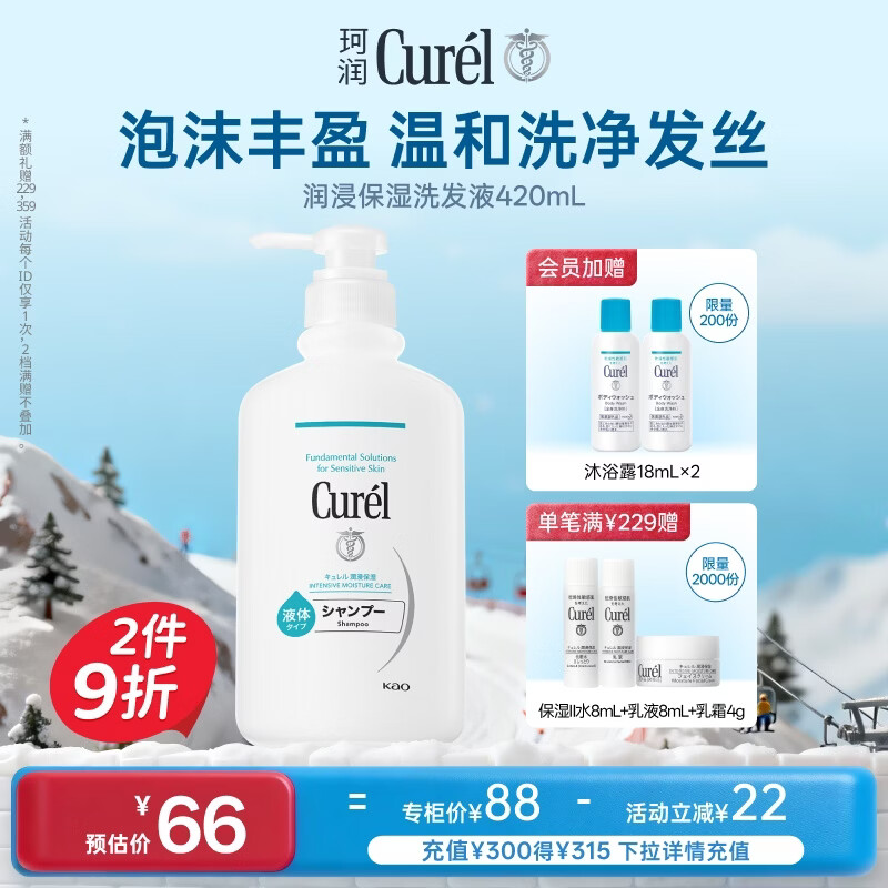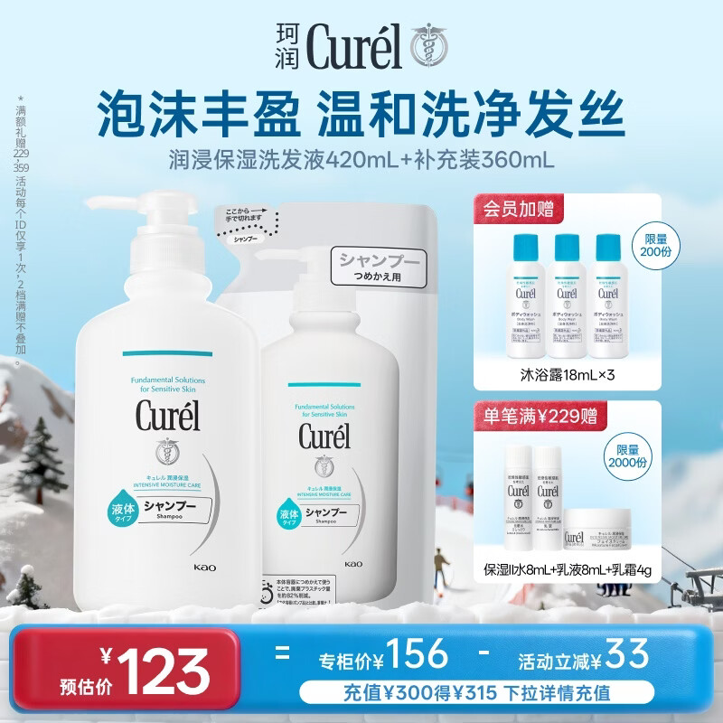 珂润(Curel)洗发液420ml+360ml(补充装) 润养秀发温和保湿洗发水套装敏肌适用