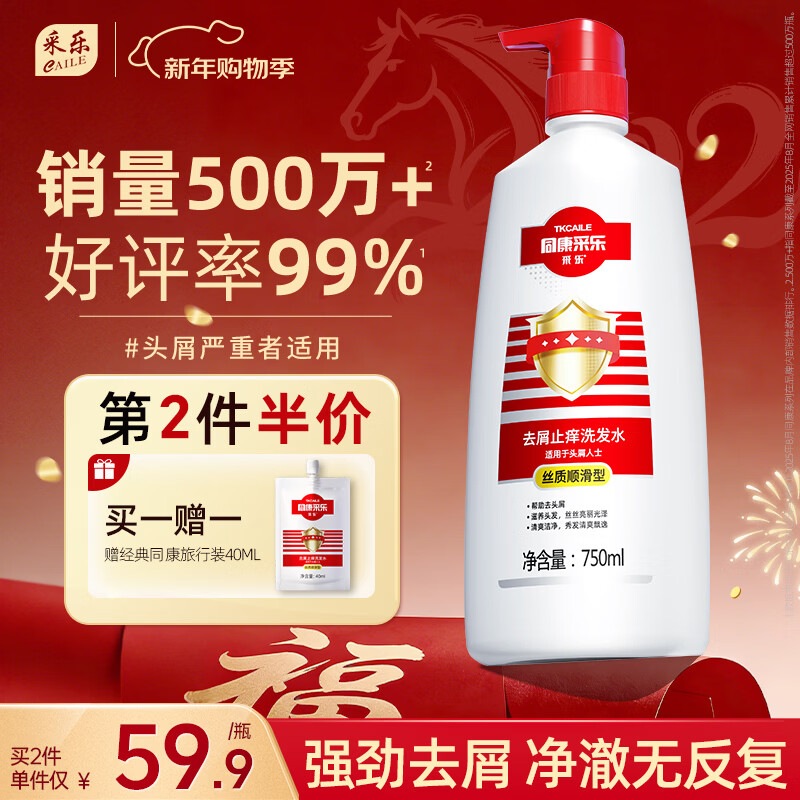 采乐同康采乐去屑洗发水止痒洗发露丝质柔顺型洗发液男女士通用750ml