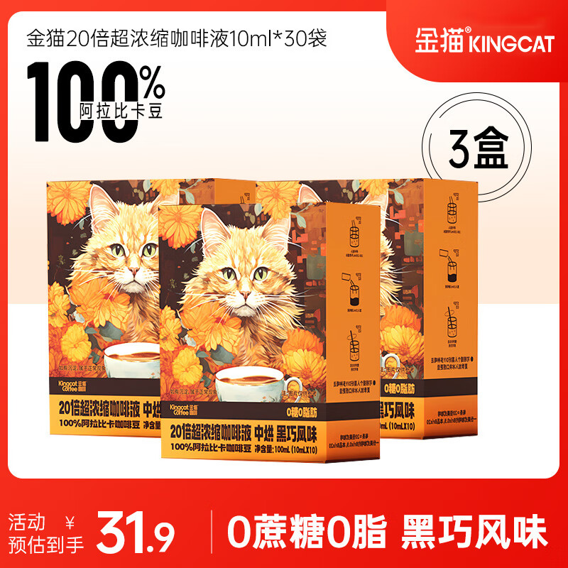金猫KINGCAT COFFEE20倍超浓缩咖啡液0糖0脂100%阿拉比卡咖啡豆 3盒(10ml*30袋)