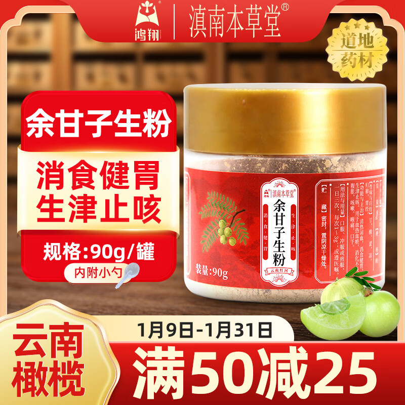 鸿翔一心堂鸿翔余甘子生粉 生津止咳 消食健胃 1盒90g【塑瓶款、大规格、内含勺、服用方便】