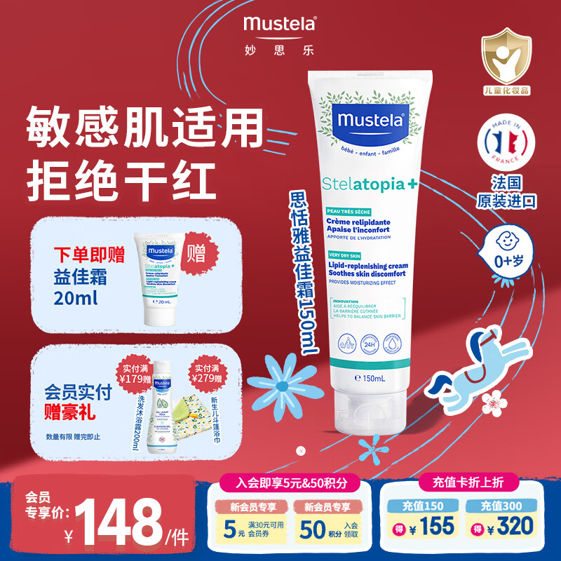 妙思乐(MUSTELA)思恬雅滋润面霜儿童身体乳婴幼儿宝宝干痒润肤霜保湿 敏感肌适用 【舒缓干红】思恬雅益佳霜150ml